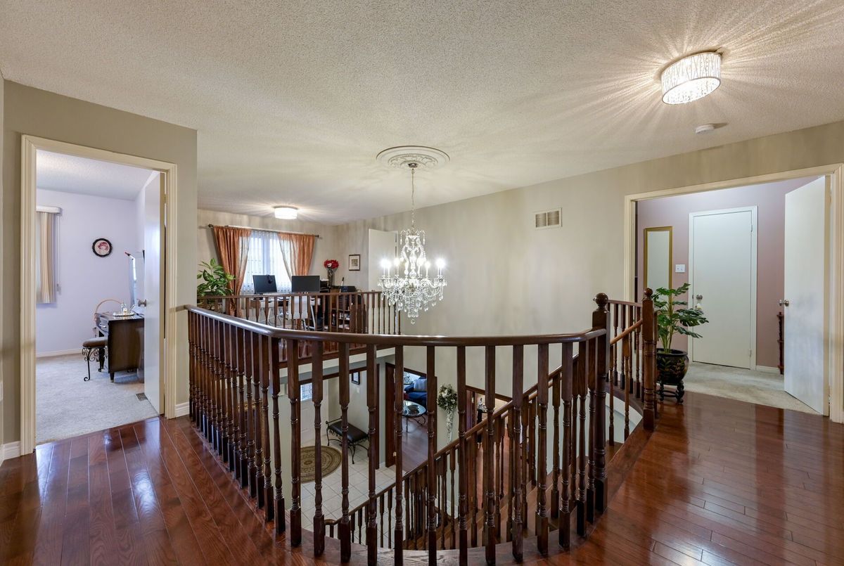 FOR THE GROWING FAMILY WITH GROWING NEEDS! The expanded driveway lets you house more vehicles, and the corner lot offers extra room to breathe, while the sweeping stone walkway introduces the front entrance. Once inside, a soaring vaulted ceiling and dramatic Scarlett O'Hara staircase welcome you to even more space. Ceramic tile and warm laminate floors pour throughout the main floor, and the family kitchen becomes the natural meeting place and soul of the home, accented with a walkout to a generous stone patio. Living and dining areas run end to end, giving you flexibility to entertain large gatherings, or you can retreat to the family room and enjoy the rolling flames of the intimate brick fireplace. Four gracious bedrooms provide comfort for everyone, including a sprawling primary suite complete with its own five-piece bath, walk in closet, and access to the loft area that can easily be transformed into a computer nook. The basement apartment features a separate side entrance and its own laundry facilities to accommodate independent generational living, or you can use it as a mortgage helper to build equity faster. Upgrades include metal roof, furnace, windows, and air conditioner. Come see!