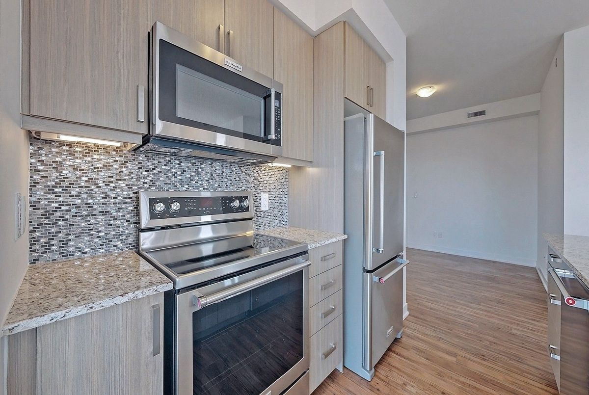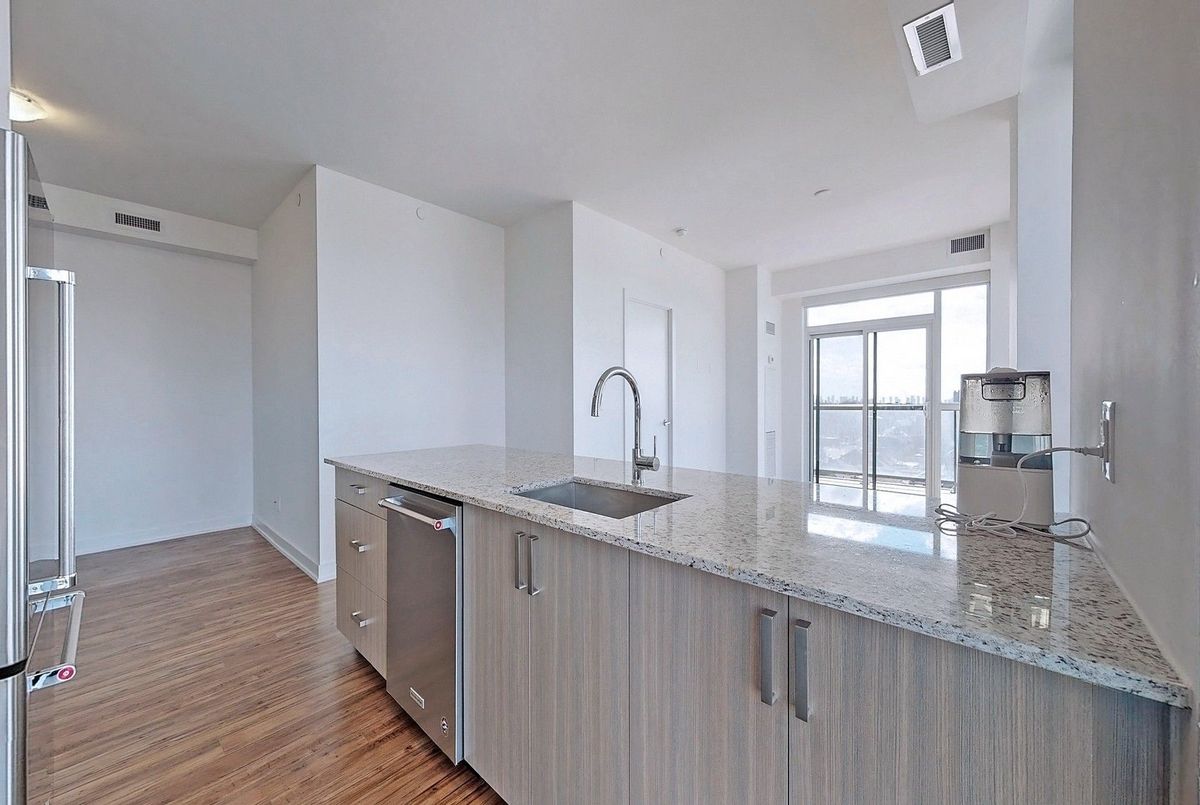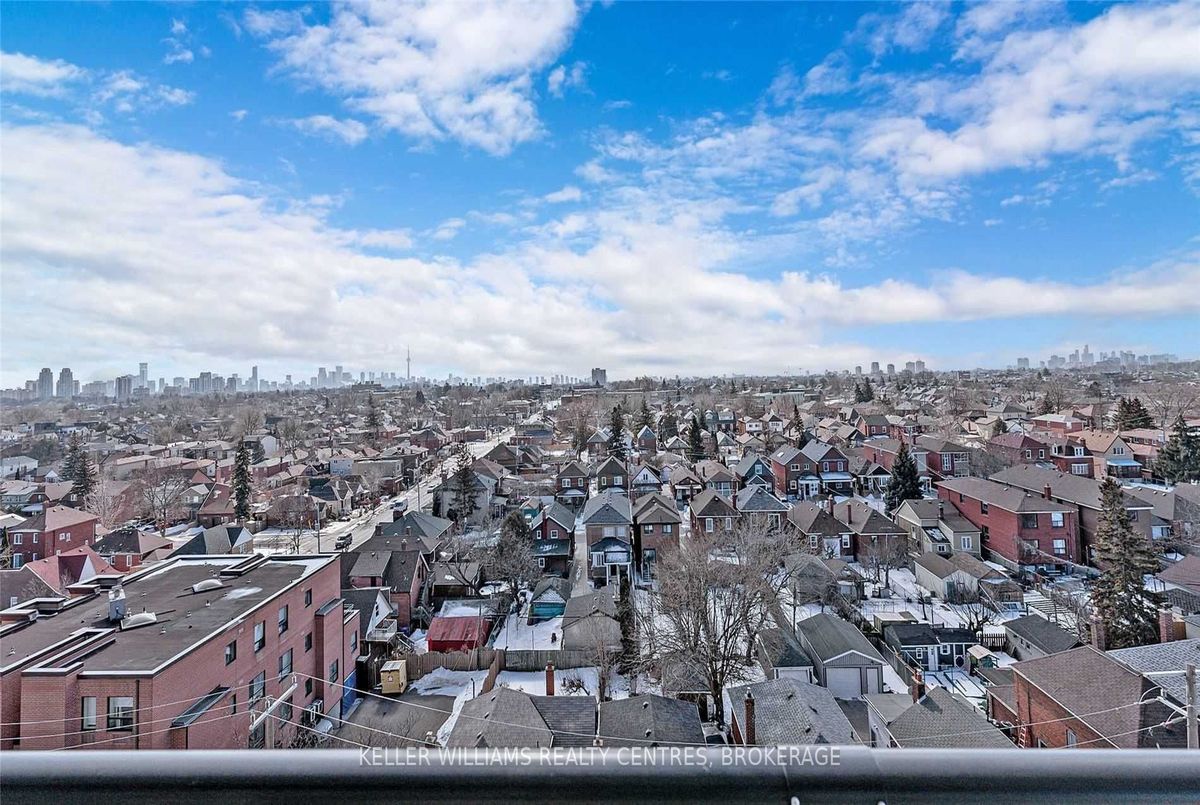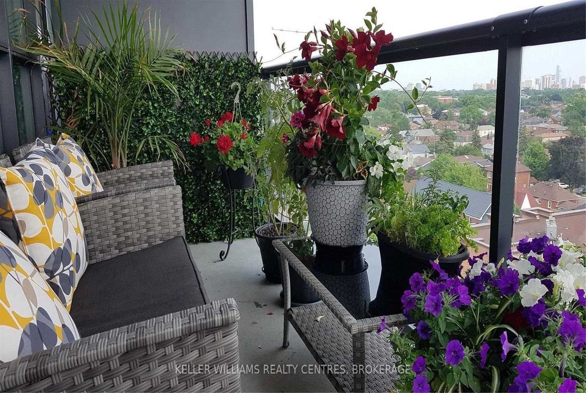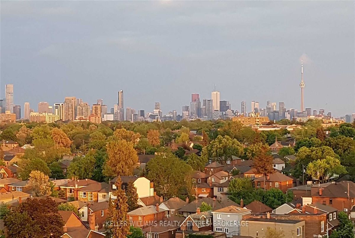 Experience refined urban living in this exceptional executive corner suite at Empire Midtown Condos, where style, space, and skyline views come together effortlessly. This beautifully appointed 2-bedroom plus den residence is filled with natural light and showcases unobstructed south-west views stretching to the iconic CN Tower and Lake Ontario.Designed for both everyday comfort and entertaining, the suite features an expansive wrap-around terrace that extends your living space outdoors-perfect for relaxing, hosting, or enjoying the city's sunsets. Inside, the open-concept layout is anchored by a sleek modern kitchen with stainless steel appliances, flowing into spacious living and dining areas. Two stylish bathrooms and a versatile den offer flexibility for a home office, guest space, or creative use, while well-proportioned principal rooms enhance the overall sense of comfort and livability.Ideally located in a rapidly evolving Midtown neighbourhood, this residence offers unmatched connectivity with the newly opened Oakwood LRT Station at your doorstep and just minutes to Eglinton West subway on the University line. Enjoy easy access to the vibrant Oakwood and Eglinton West corridor, known for its diverse dining, cafés, bakeries, local shops, parks, schools, and everyday conveniences that continue to elevate the area's appeal.Residents of Empire Midtown enjoy premium amenities including a 24-hour concierge, fitness and yoga studios, a party lounge with fireplace and a rooftop terrace with BBQs and lounge areas. Guest suites, pet wash/bath room and a bike repair room add further convenience and functionality for residents and visitors alike. Includes one underground parking space (near the elevators) and a locker. A rare opportunity to own in one of Midtown Toronto's most connected and dynamic communities, offering an ideal blend of lifestyle, comfort, and long-term value in a growing urban hub. Some rooms virtually staged.